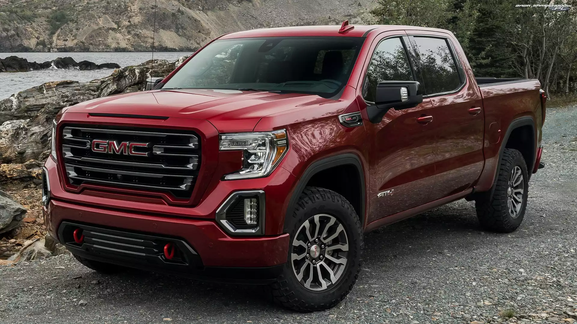 Samochód: Czerwone, GMC Sierra AT4