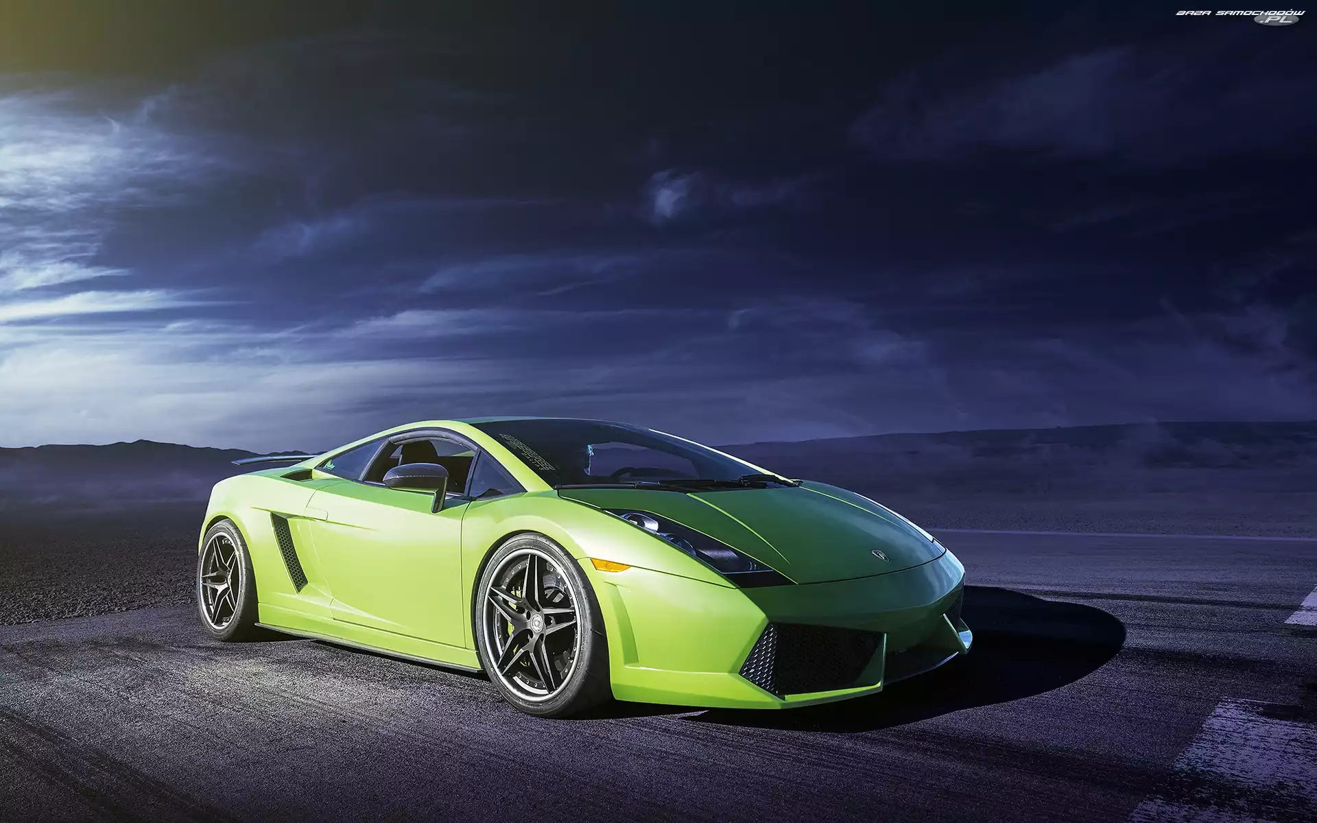 Samochód: Noc, Góry, Gallardo, Lamborghini, Droga